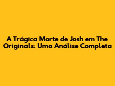 A Trágica Morte De Josh Em The Originals: Uma Análise Completa