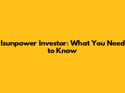 Isunpower Investor: What You Need To Know