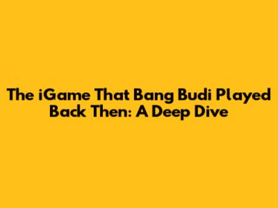 The IGame That Bang Budi Played Back Then: A Deep Dive