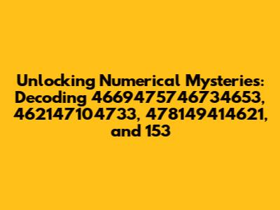 Unlocking Numerical Mysteries: Decoding 4669475746734653, 462147104733, 478149414621, And 153
