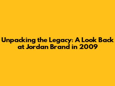 Unpacking The Legacy: A Look Back At Jordan Brand In 2009